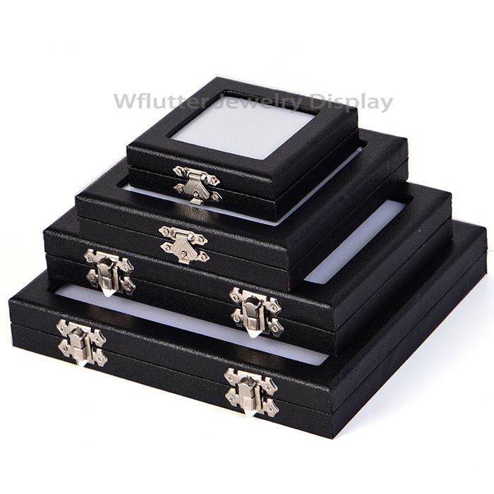 Opal case gemstone box glass lid 50 gem jars black or white. Opal box gemstone display case black white 50pcs 5 5 x 5 5cm. Novel box glass top black jewelry gemstone display case with gem jar tray insert.